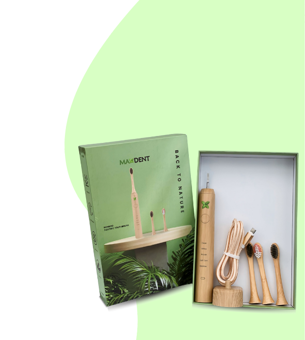 The Maxdent Rechargeable Bamboo Electric Toothbrush combines sustainability with effective oral care. Its soft bristles provide gentle yet thorough cleaning, while the rechargeable design ensures convenience and eco-friendliness. The set includes three replacement heads, making it a long-lasting solution for daily dental hygiene. Crafted with bamboo, it offers a stylish, biodegradable alternative to plastic toothbrushes without compromising performance. Ideal for adults seeking a sustainable and efficient way to maintain healthy teeth and gums.