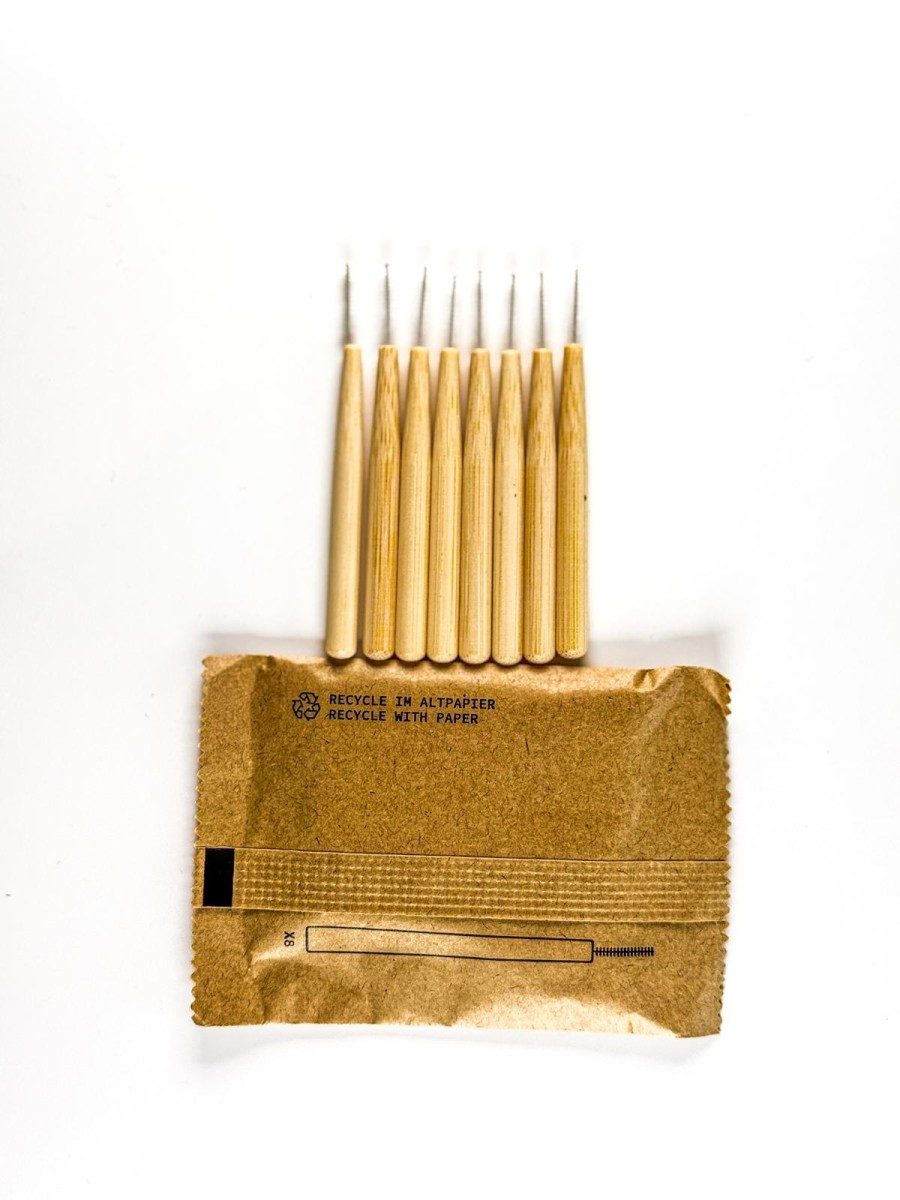 – Eco-friendly interdental brushes made from sustainable bamboo material.